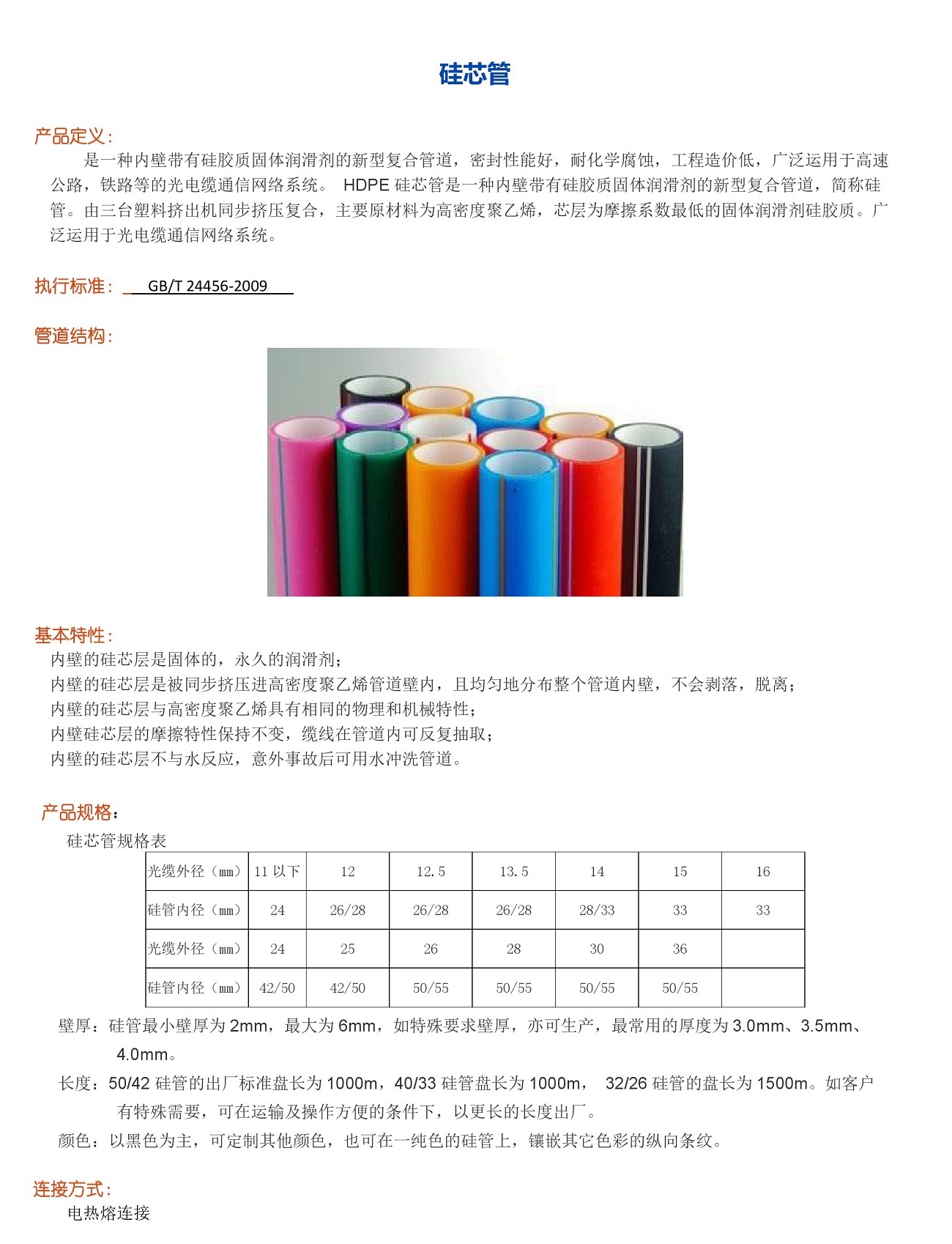 硅芯管內(nèi)壁的硅芯層與高密度聚乙烯具有相同的物理和機(jī)械特性;