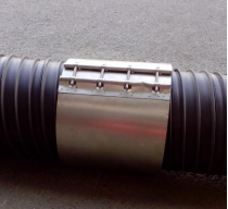 4)將橡膠套套入管材端部,套入長度為橡膠套的一半,然后將另一半翻折回來套在同一管端。
