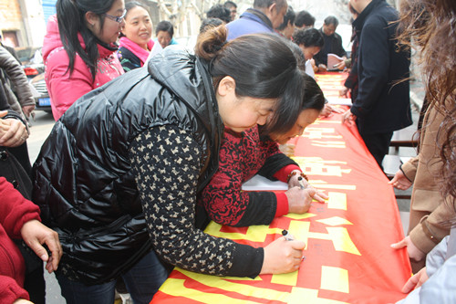 3月22日上午,區(qū)自來水公司與玉帶社區(qū)等單位聯(lián)合舉辦“地球一小時(shí)”熄燈宣傳倡議活動(dòng),共同向社會(huì)廣大市民發(fā)出關(guān)愛地球,關(guān)電熄燈的倡議,共享環(huán)保一小時(shí),公司員工代表紛紛在活動(dòng)條幅上簽名,做出自己的環(huán)保承諾,同時(shí),活動(dòng)也得到了廣大市民的積極參與與響應(yīng)。