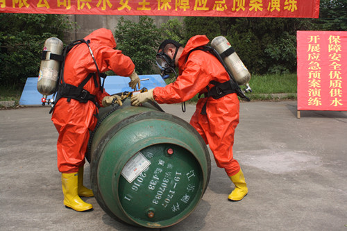 為進一步提高安全防范水平,保障夏季高峰供水,6月24日,區(qū)自來水公司根據安全生產月活動安排,在第二水廠舉行了液氯泄漏及突發(fā)性水源微污染事件應急預案演練,公司制水生產、機電維修、水質檢測等工種人員參加了演練,區(qū)域供水增壓泵站工作人員進行了全過程學習。區(qū)城建局相關部門負責人進行了現場指導,區(qū)污水處理廠和亨達水務等兄弟單位組織人員現場觀摩。