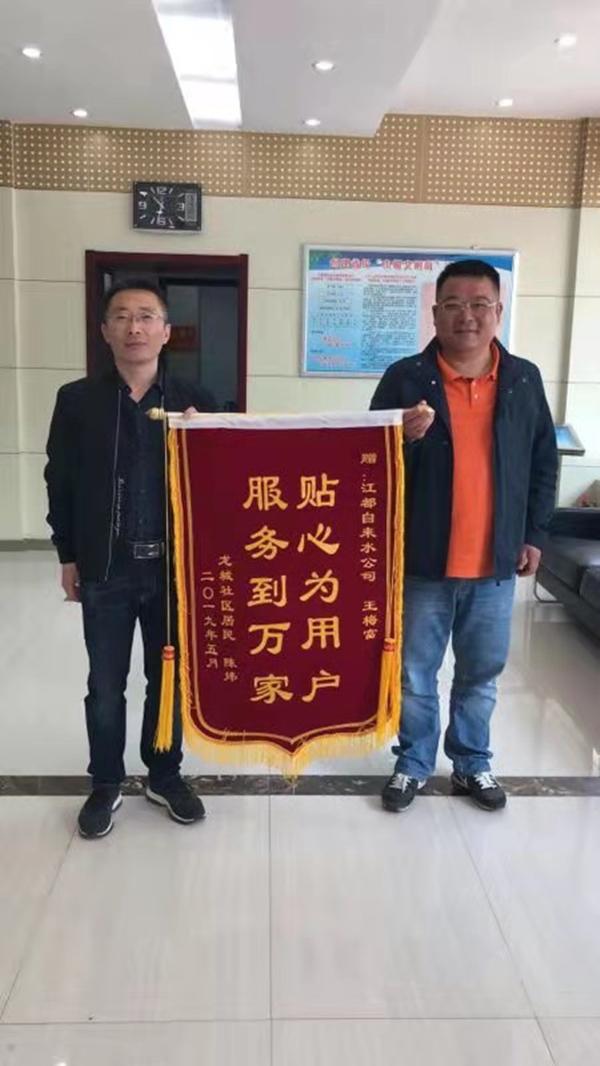 2019年5月的一天,自來水公司又收到用戶送來的錦旗,原來是王梅富同志又一次解決了用戶家中漏水的問題。當(dāng)公司打電話告知在外面工作的王梅富同志來大廳接受這一喜訊時,他在電話里說這是他應(yīng)該做的,十分感謝這位用戶的好意,但是今天任務(wù)重,就來不及趕回來當(dāng)面感謝了,他承諾以后會一如既往的認真工作,不辜負這份榮譽。