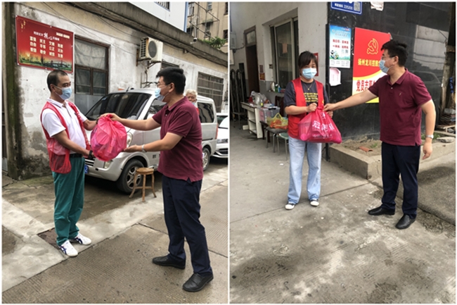 本次水務公司對口支援防疫志愿服務社區的是仙女鎮樊莊社區,王智勇帶領公司黨政工領導代表先后來到該社區無物管小區的公交公司宿舍、女神公寓、綜合樓、龍都花園、東方苑、建材廠和虹都苑等防疫執勤點,為堅守防疫一線的工作人員送上泡面、牛奶、蘇打水和口罩等生活、防疫物資,并向他們致以誠摯的問候,感謝他們在疫情防控緊要關頭,迎難而上、積極應對,始終做好“守門員”盯緊“防疫線”,用實際行動踐行初心使命,用堅毅的品格將“我為群眾辦實事”貫徹到底,并落在當前最為關鍵的抗疫實處。每到一處,王智勇都會詳細了解執勤點的干部職工的個人防護、崗點值守后勤保障等情況,鼓勵大家繼續發揚好連續作戰的精神,細致工作,科學防控,在履職盡責的同時做好自身防護,確保用更為良好的精神狀態繼續幫助樊莊社區做好常態化疫情防控工作,與全區人民一道堅決打贏打好這場疫情防控戰。