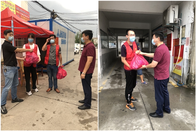 疫情就是命令,防控就是責任,823日在總經理王智勇的帶領下,水務公司黨政工領導代表堅守在疫情防控執勤點的人員進行慰問并帶去防疫物資