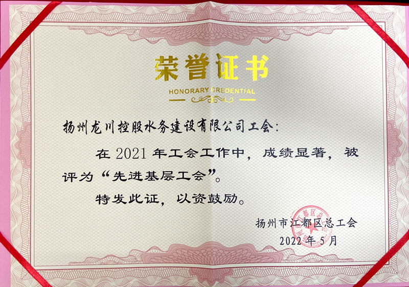 揚州龍川水務公司工會榮獲“先進基層工會”稱號 水務公司四個班組榮獲“工人先鋒號”稱號