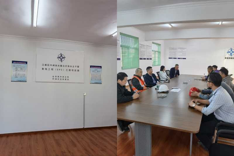 施工現(xiàn)場檢查完畢后,指導組來到中閘供水圈北片供水主干管線復線工程項目部,王智勇總經(jīng)理強調(diào),在工程管理中,安全管理是第一位的,尤其是管線施工,沿線圍擋設置很重要。要加強重點領(lǐng)域、重點部位、重點人群的管理,安全教育和制度尤其要落實到第一線人員。最后,龍泉公司韓春暉經(jīng)理要求現(xiàn)場安全管理人員要以身作則,安全檢查隱患落實到紙上,并要求及時整改,整改不到位給予一定的懲處措施。對于指導組的指導意見和要求,龍泉公司各相關(guān)部門紛紛表示,將緊緊圍繞公司檢查組領(lǐng)導的指示,竭力為此工程努力,力爭文明、優(yōu)質(zhì)、高效建好本工程。