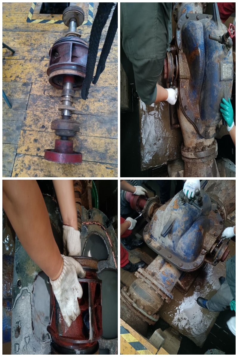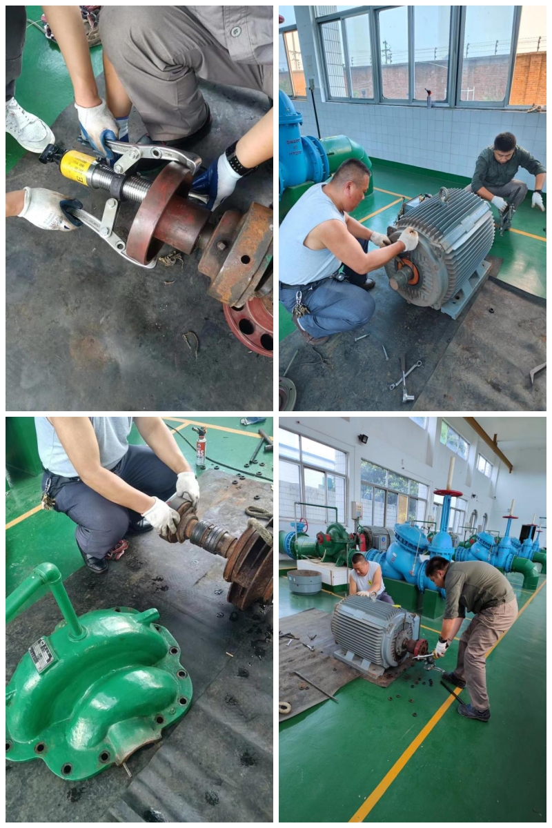 以上組圖為對(duì)送水泵房5#泵和電機(jī)進(jìn)行保養(yǎng)和維護(hù),更換軸套、軸承和電機(jī)軸承等