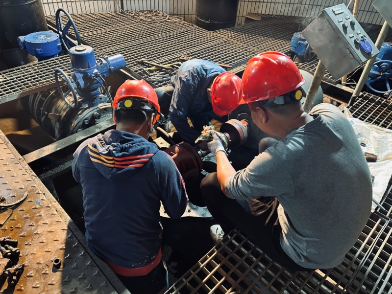深夜12點,維修工作按計劃開始。二水廠廠長許明、運行班長葉欣、機修班長黃志忠及班組成員均參與了此次維修工作。同志們干勁十足,爭分奪秒。經(jīng)過兩個多小時的奮戰(zhàn),順利完成了維修工作。