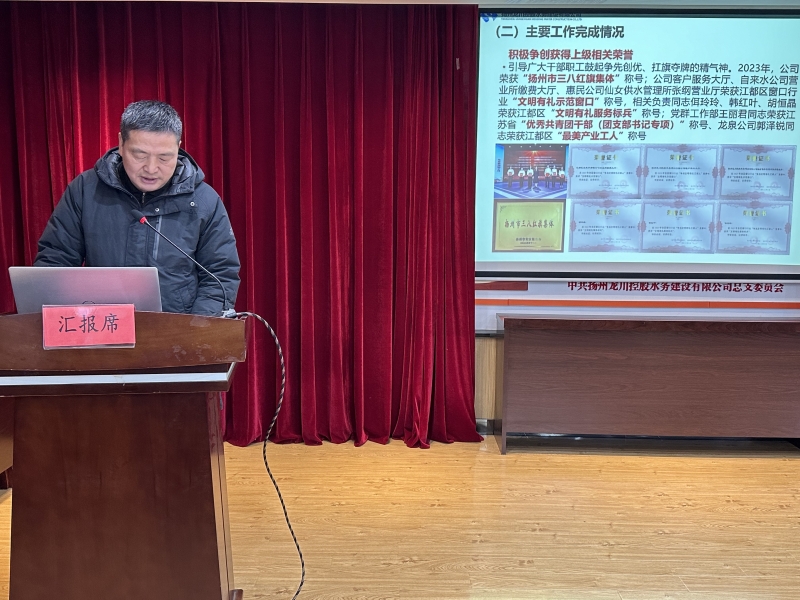 在各部門單位作相互交流匯報的基礎(chǔ)上,總經(jīng)理李忠國同志代表水務公司作總結(jié)匯報,全面回顧總結(jié)了過去一年公司在生產(chǎn)經(jīng)營管理、重點工作開展方面以及公司黨建和企業(yè)文化建設(shè)等方面所取得的成績,客觀分析了公司在生產(chǎn)經(jīng)營領(lǐng)域所面臨的新挑戰(zhàn),并明確下一步工作措施。同時,對公司2024年度產(chǎn)差控制、降本增效、數(shù)字化轉(zhuǎn)型、重大工程建設(shè)等八大方面重點工作進行了全面規(guī)劃與部署。
