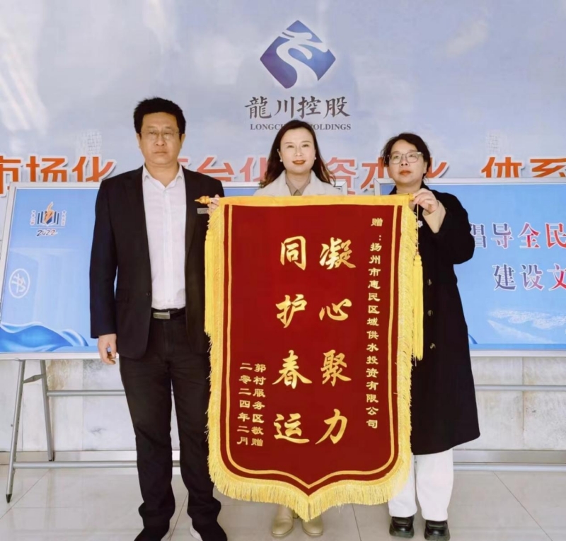 “謝謝,謝謝惠民供水公司為我們送水,解決了燃眉之急”。3月7日下午,啟揚高速郭村服務區的負責人將一面“凝心聚力 同護春運”的錦旗送到了揚州龍川水務公司下屬惠民區域供水公司,對該公司貼心服務、真誠解憂的行為表示感謝。