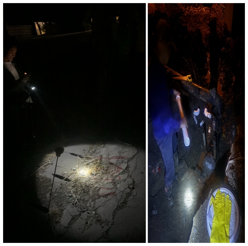 6月天氣開始炎熱起來,在丁伙大街上總能看到三五個人頂著炎炎烈日,在路邊好像尋找著什么,他們是惠民公司南片區維修所的員工。前一天,剛做完夜間閉閥試驗,隨即就分析出了丁伙鎮區高漏區域。第二天依舊頂著太陽,沿著路邊一邊和居民了解用水情況,一邊挨個掀開井蓋進行排查,并統計用戶數。經過一天的走訪摸排,終于在原老丁伙水廠鋪設的一處DN50PVC管道上發現了問題,考慮到此處位于主干道路邊,存在著一定的安全隱患問題,經過研究討論,決定將此處管道進行調整,以滿足用水需求。