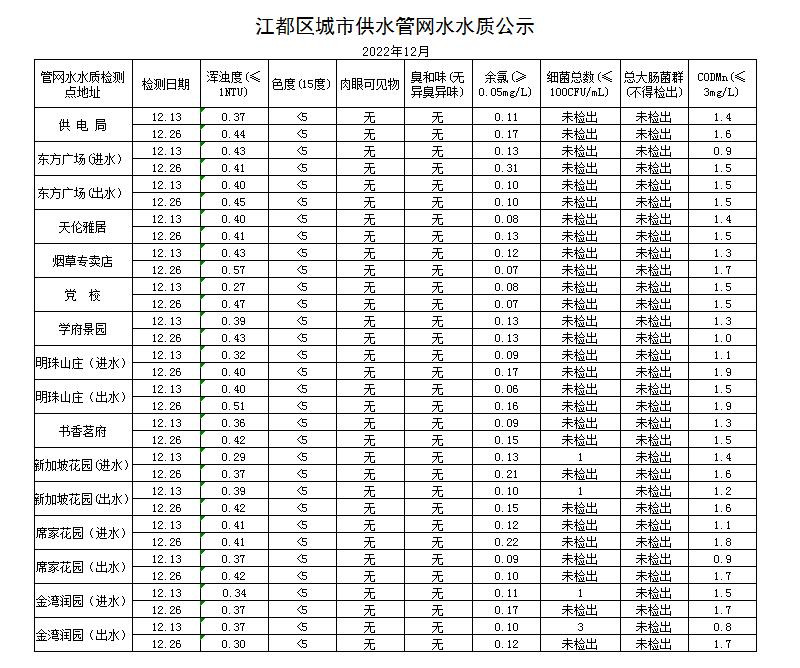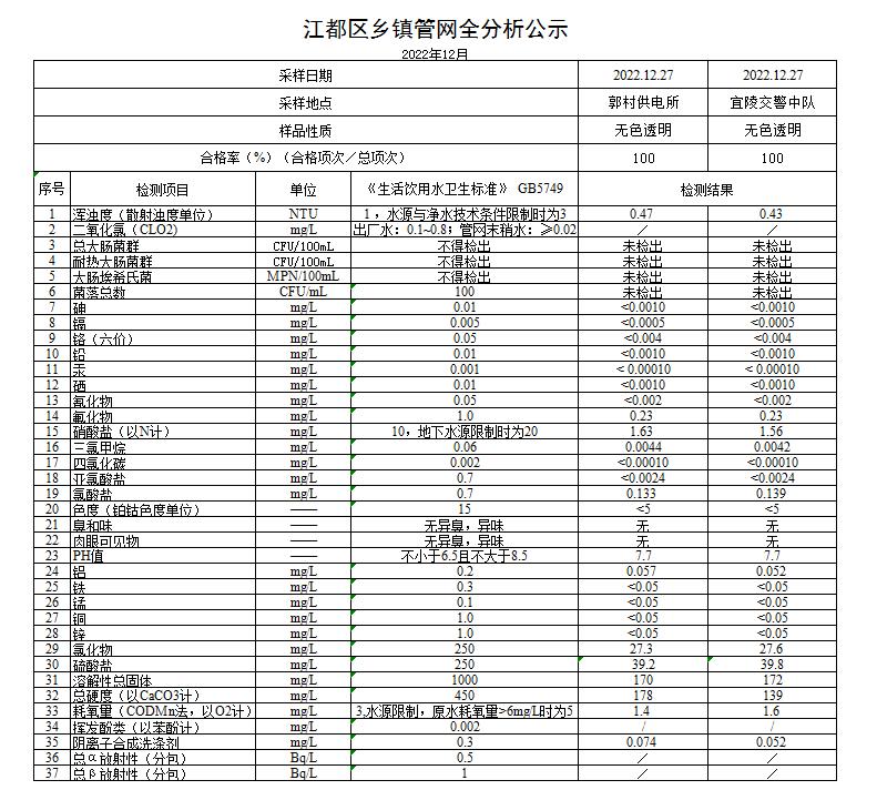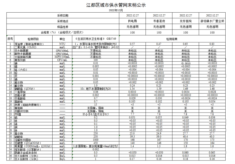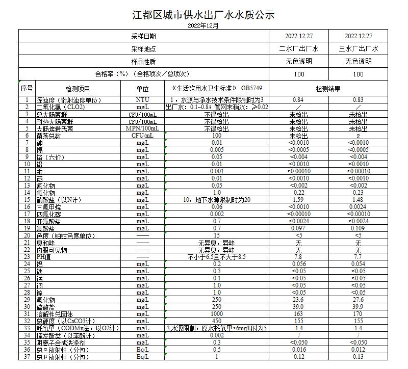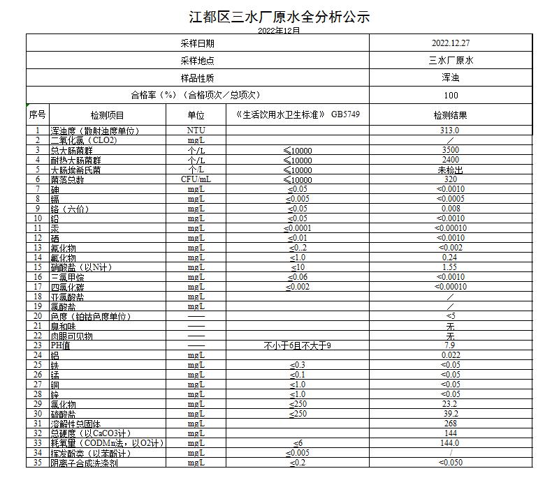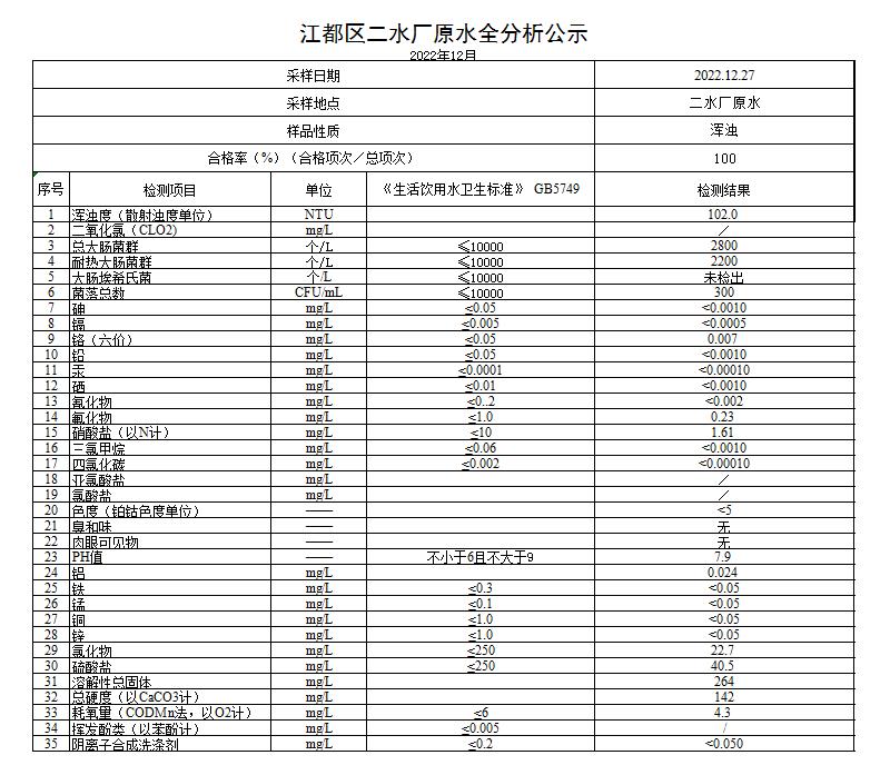 水質(zhì)公示